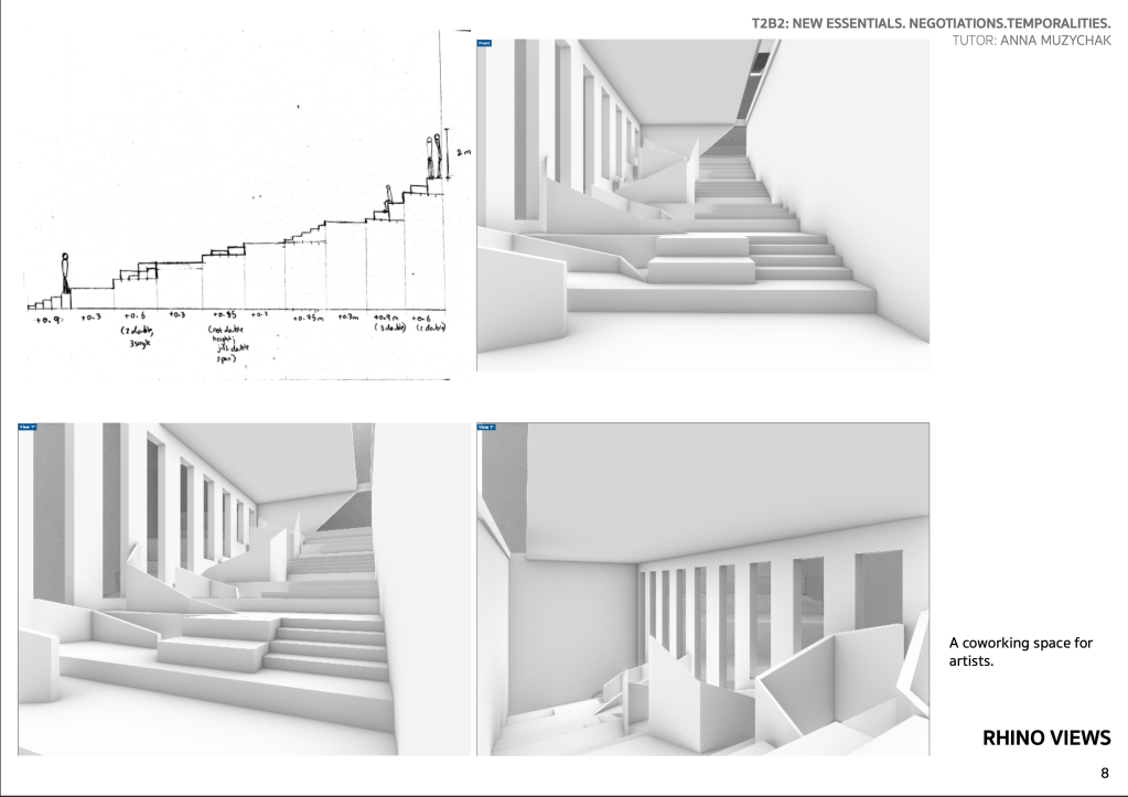 I used these three spatial conditions as starting points for my designs. I focused on playfulness and non-stagnancy convened through architectural elements like stairs and ramps.