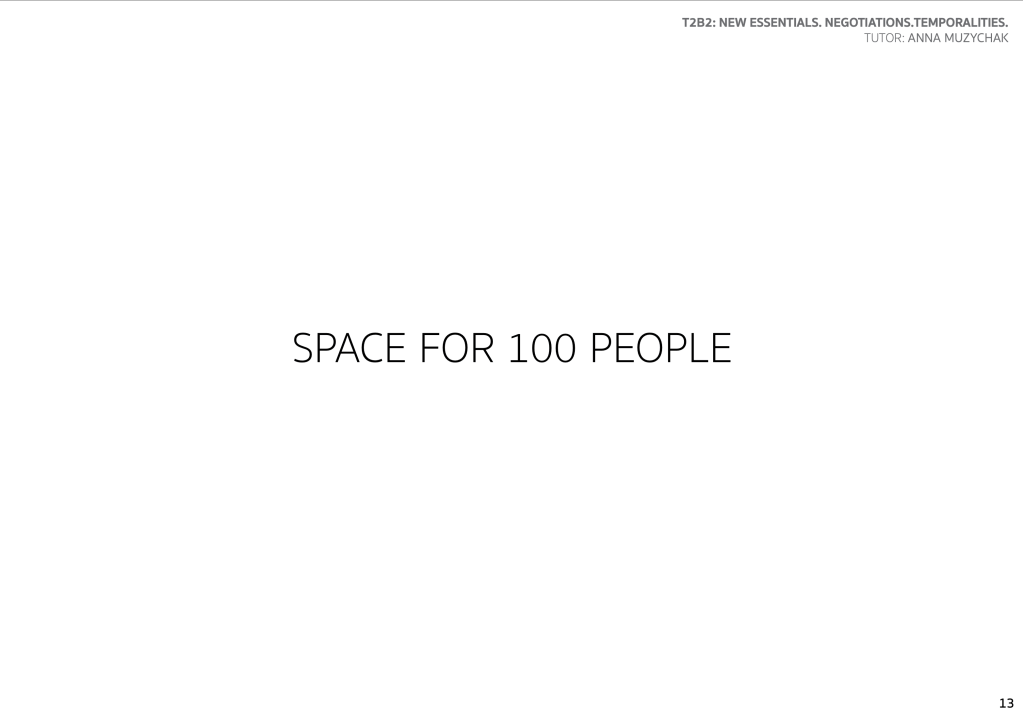 From my catalogues for spaces of collective experience and spaces of intimacy (from T2B1), I chose three main spatial conditions (amongst others):