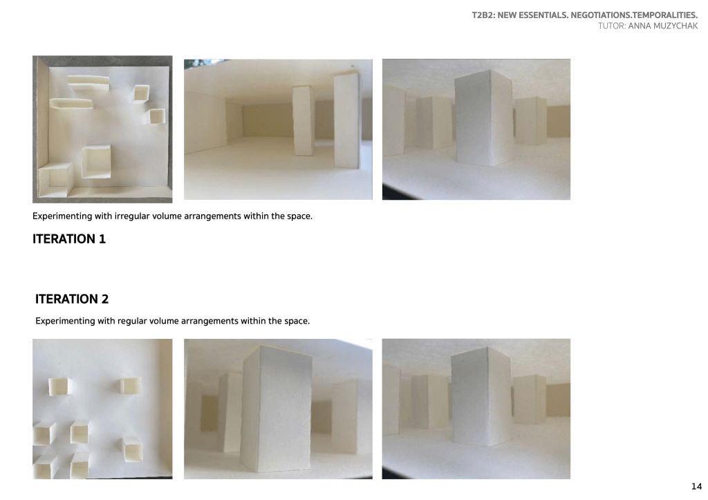 In T2B1, we translated our findings to catalogues of specific architectural spatial conditions. We used T2B1 discoveries to create design iterations for: