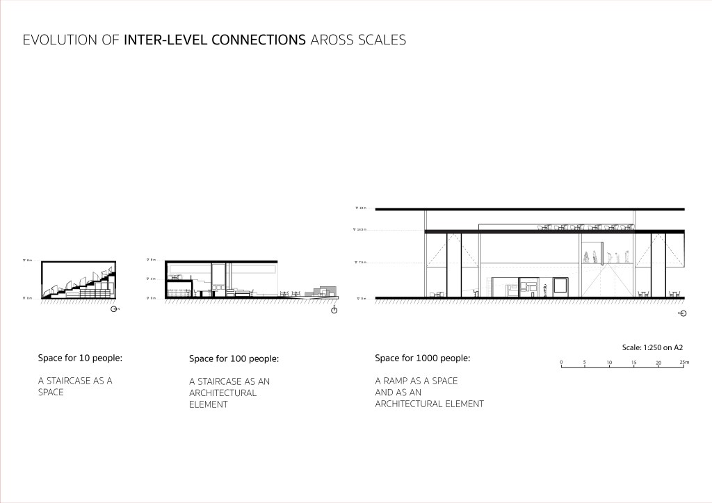 Playfulness and non-stagnancy convened through architectural elements like stairs and ramps.